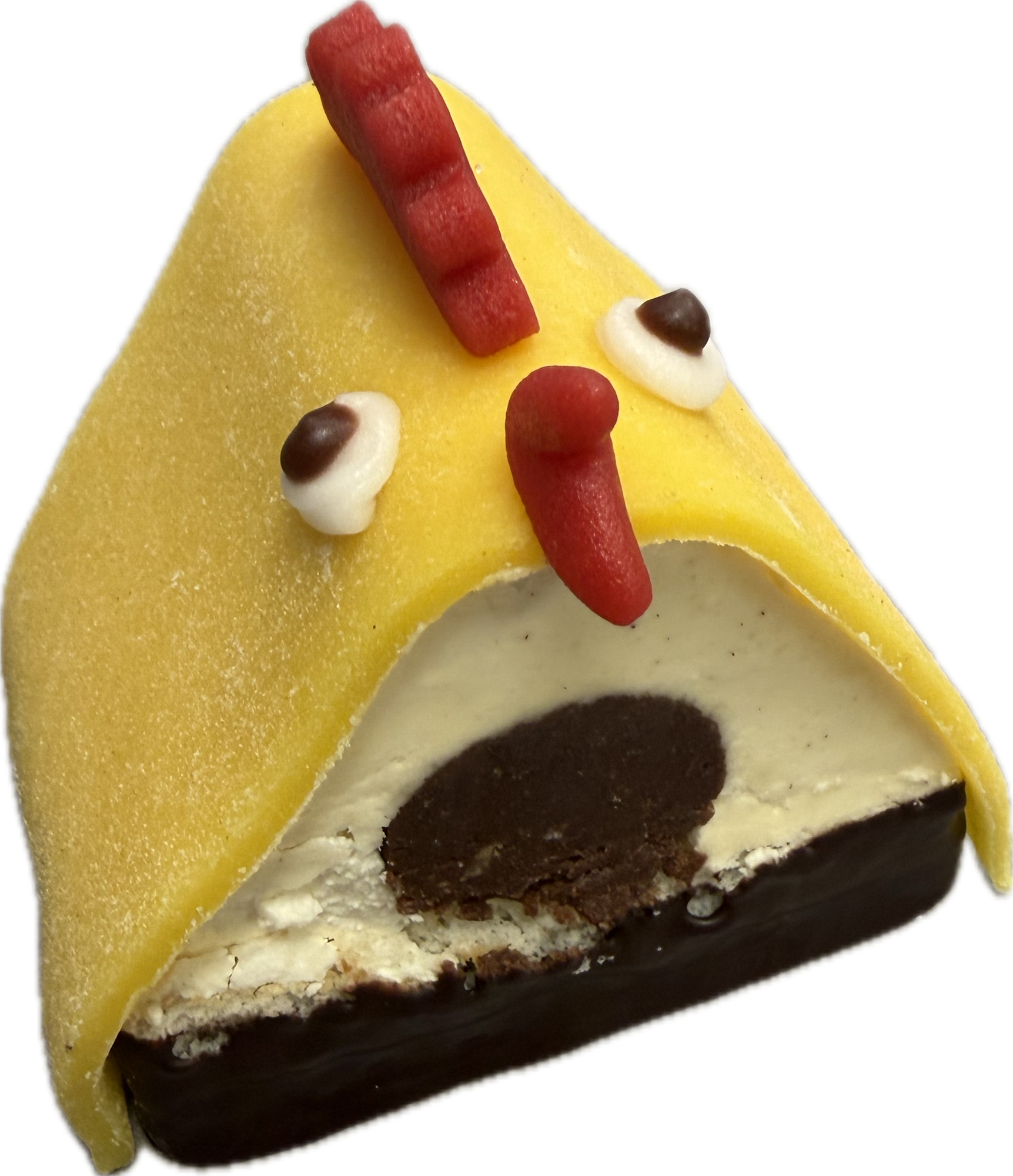 Lys kagebund, hindbærmarmelade, romkugle, vaniljecreme og marcipan